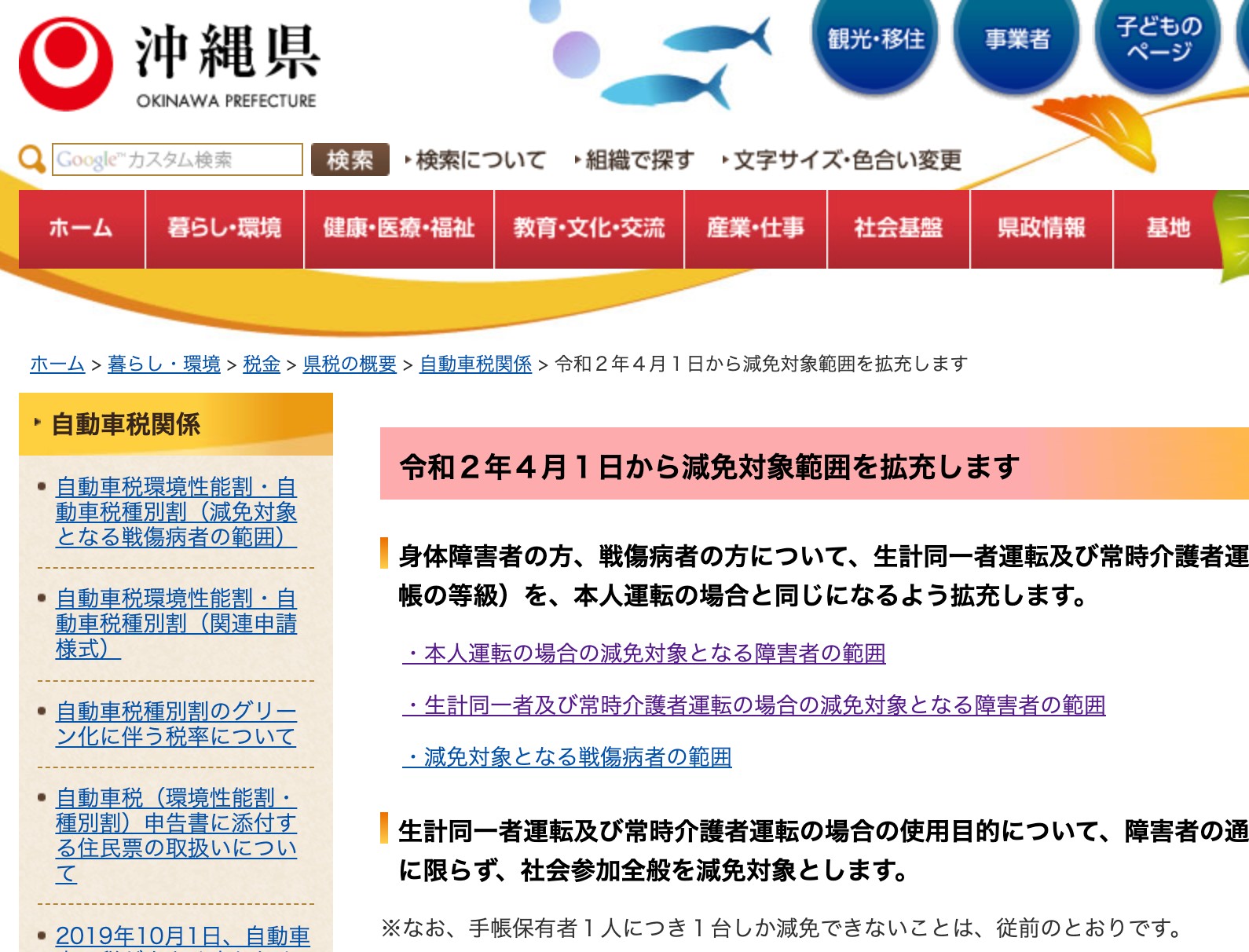 令和2年4月1日から減免対象範囲が拡充され、さらに減免申請時の書類として提出していた「通院・通学証明」等が不要となりました。詳しくは沖縄県公式HPよりご確認下さい。 ⇒ 減免対象範囲について減免申請・必要書類